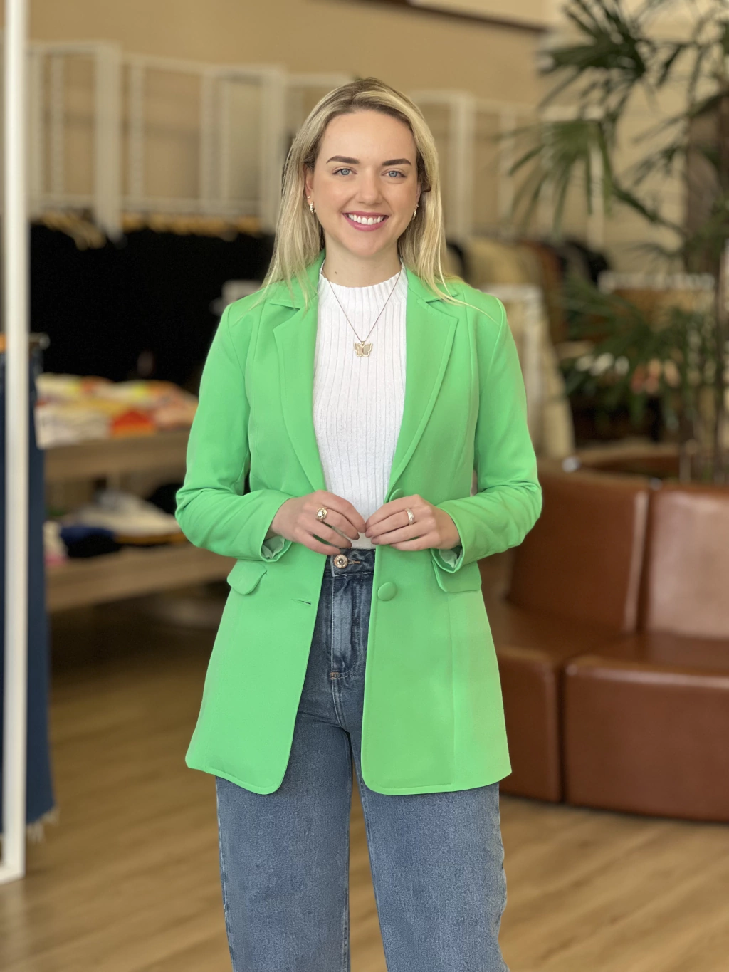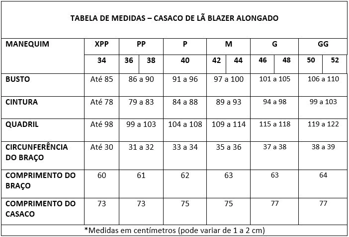 Esse blazer alongado é o clássico que vai complementar o guarda roupa de qualquer mulher. Além de lindo, é feito em tecido de alfaialtaria, super elegante. Esse blazer alongado tem gola com curvas, fechamento duplo por botões e bolsos com lapelas. Possui manga longa e tem silhueta acinturada.