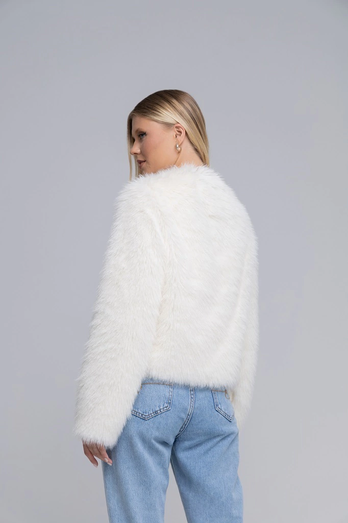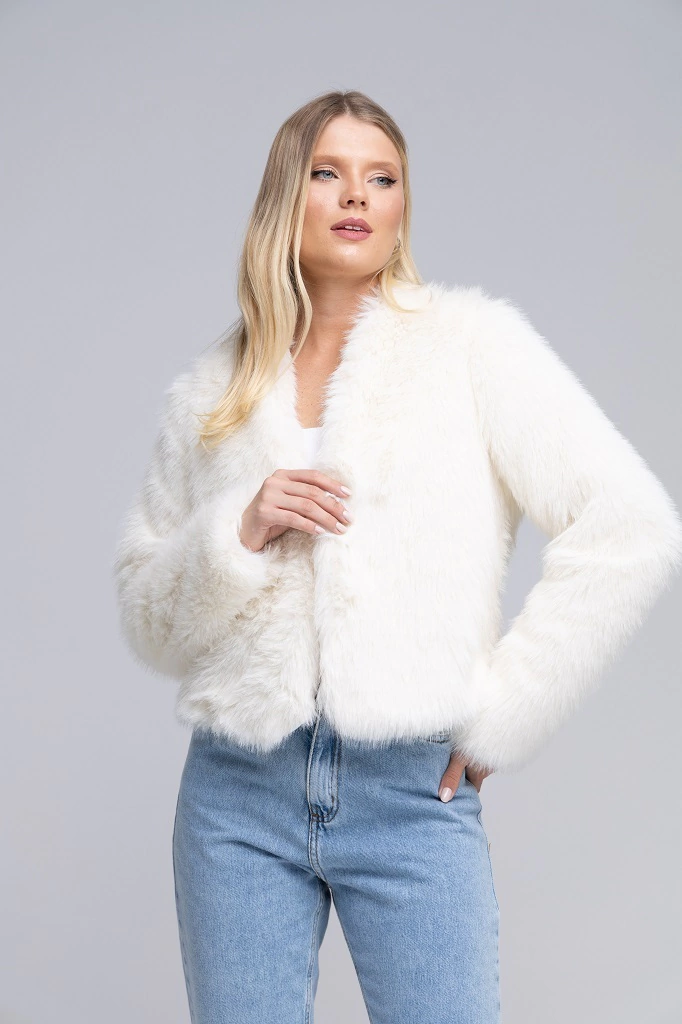 O Casaco de pele sintética é uma opção deslumbrante e cheia de estilo. Tem toque super macio e caimento confortável. É feito com pele sintética e todo forrado com tecido acetinado por isso é extremamente quente. Ideal para ocasiões onde o glamour é essencial.